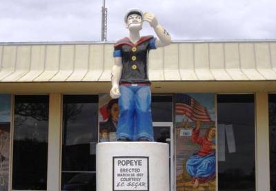 ![]() | ![]() The 6 ft. bronze Popeye statue, dedicated in 1977, is located in the Segar Memorial Park (near the the Chester Bridge). |