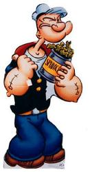 Όπως έγινε και με τον αρραβωνιαστικό (Ham Gravy ο πρώτος αρραβωνιαστικό της Olive) , έτσι και με το σπανάκι η καθιέρωσή του έγινε σταδιακά. Το σπανάκι εμφανίστηκε για πρώτη φορά το 1932 σε strips και cartoons, όμως η υπερβολική του αυτή δύναμη καθιερώθηκε από τα cartoons. Στα strips απλά γινόταν πιο δυνατός, όμως στα cartoons γινόταν Superman . Η υπερβολή αυτή άρεσε σε πολλούς νεότερους σχεδιαστές, οι οποίοι και την καθιέρωσαν στις ιστορίες τους.